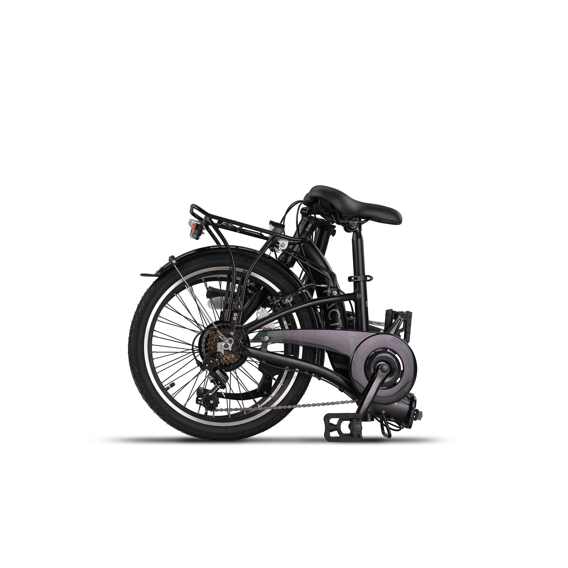 Folding takes just 10 seconds, and once folded, it’s compact enough to fit in your car, on public transport, or in a camper or boat. With a 6-speed Shimano derailleur and smooth V-brakes, the ride is easy, comfortable, and reliable every time.